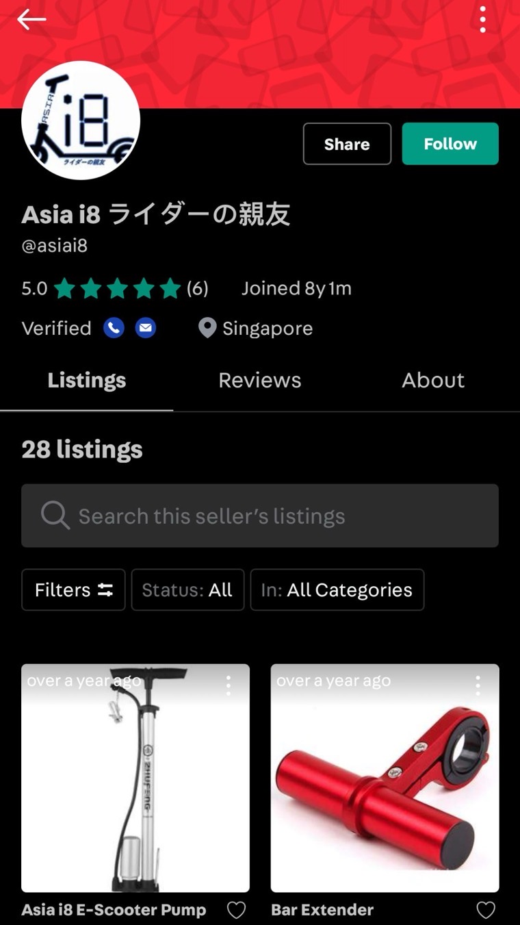 He also has another Carousell account using the same mobile phone, selling bicycle-related items. Wow, multiple businesses, impressive!