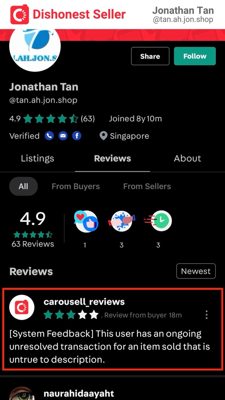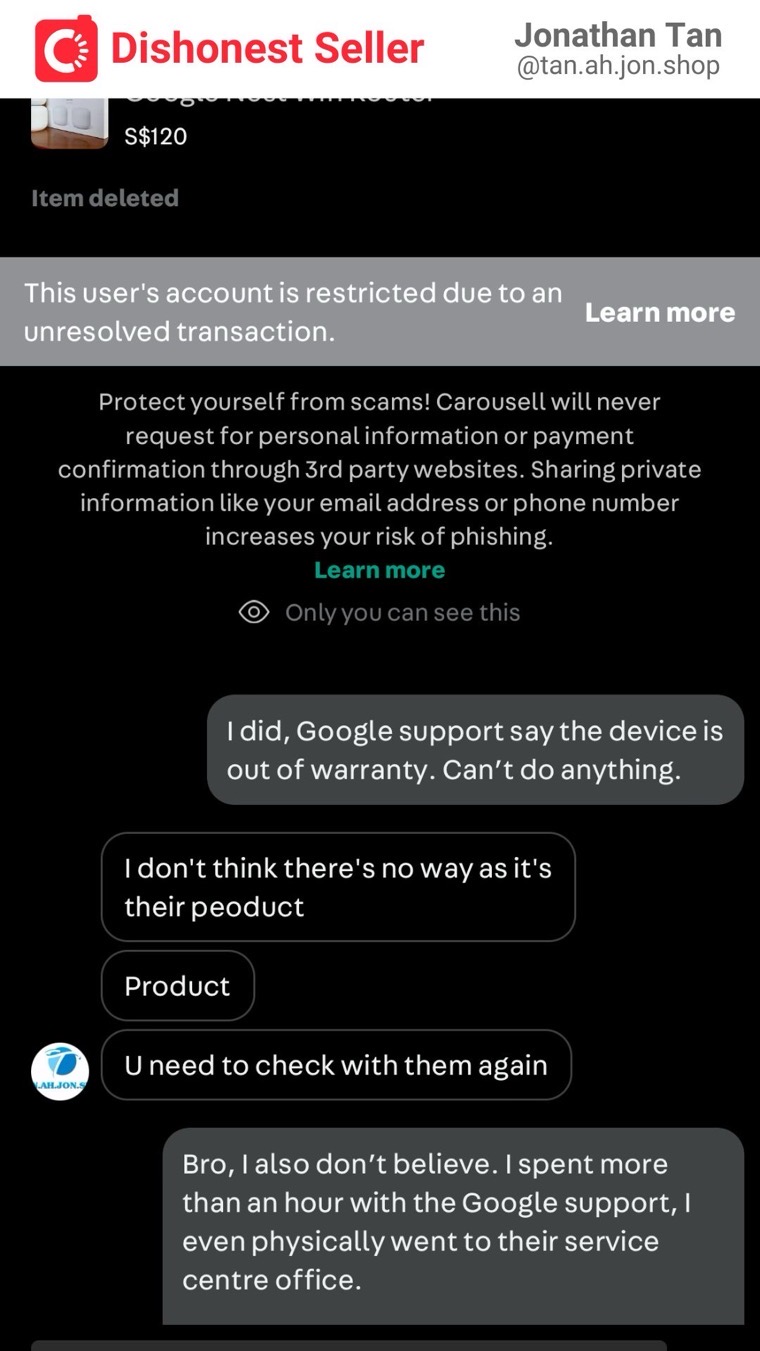 I’m glad that Carousell is doing their part to protect the community from dishonest sellers. Thank you Carousell.