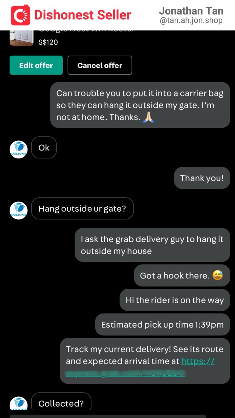 Anyway, I arranged for Grab Express to collect and deliver the product to my house. I transferred the full amount to him before the Grab rider arrived. Everything went well, except when I asked him to accept my offer so we could exchange reviews, he did not respond. This raised a red flag for me. While I sensed a warning sign, I didn’t dwell on it too much since I had already made the payment and received the product. Excitedly, I went home, eager to test the product.