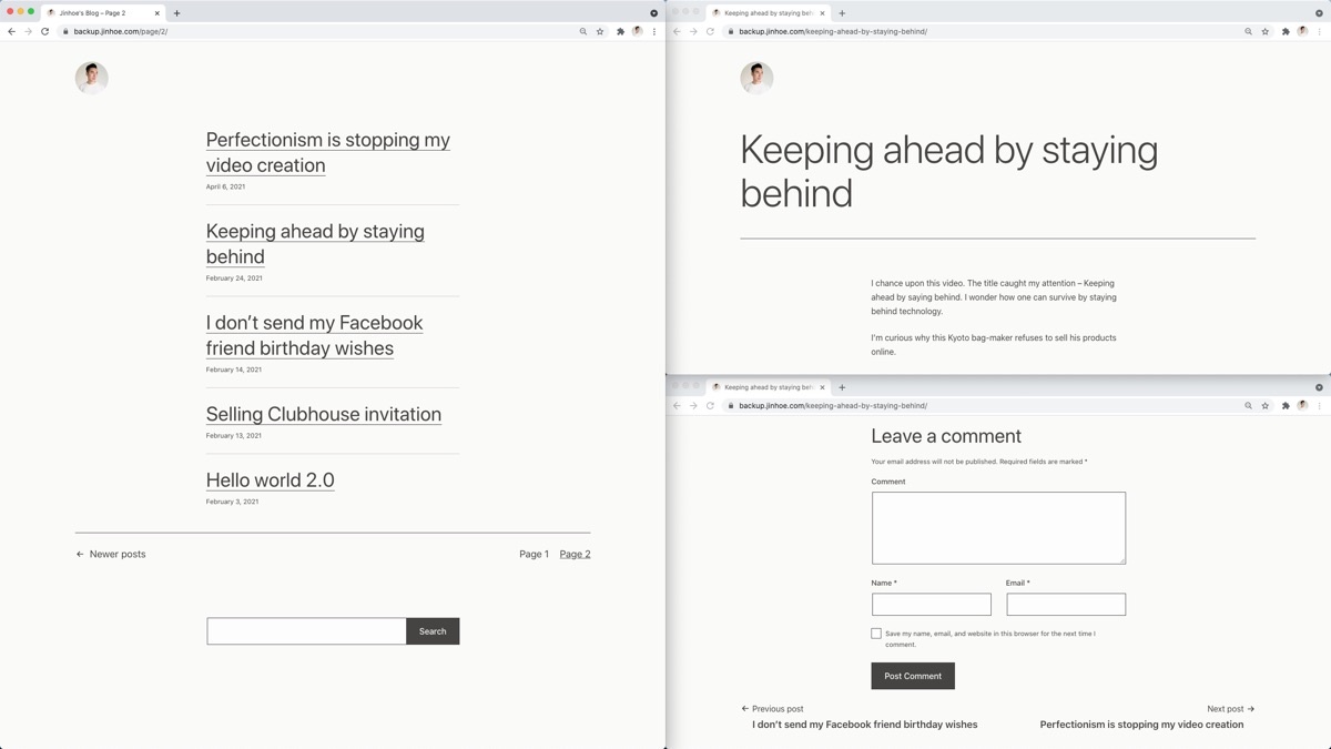 I’m so excited to discover this minimal yet amazing CMS. Anyway I’ll keep a record of all my past and future blog site below.