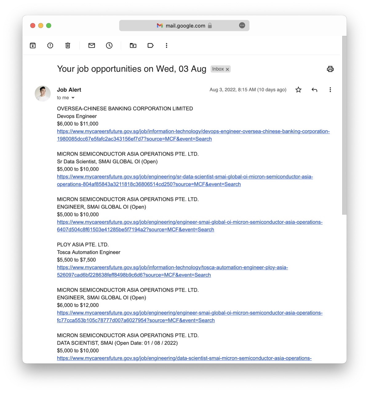 This is the daily curated job posting email I receive in my inbox