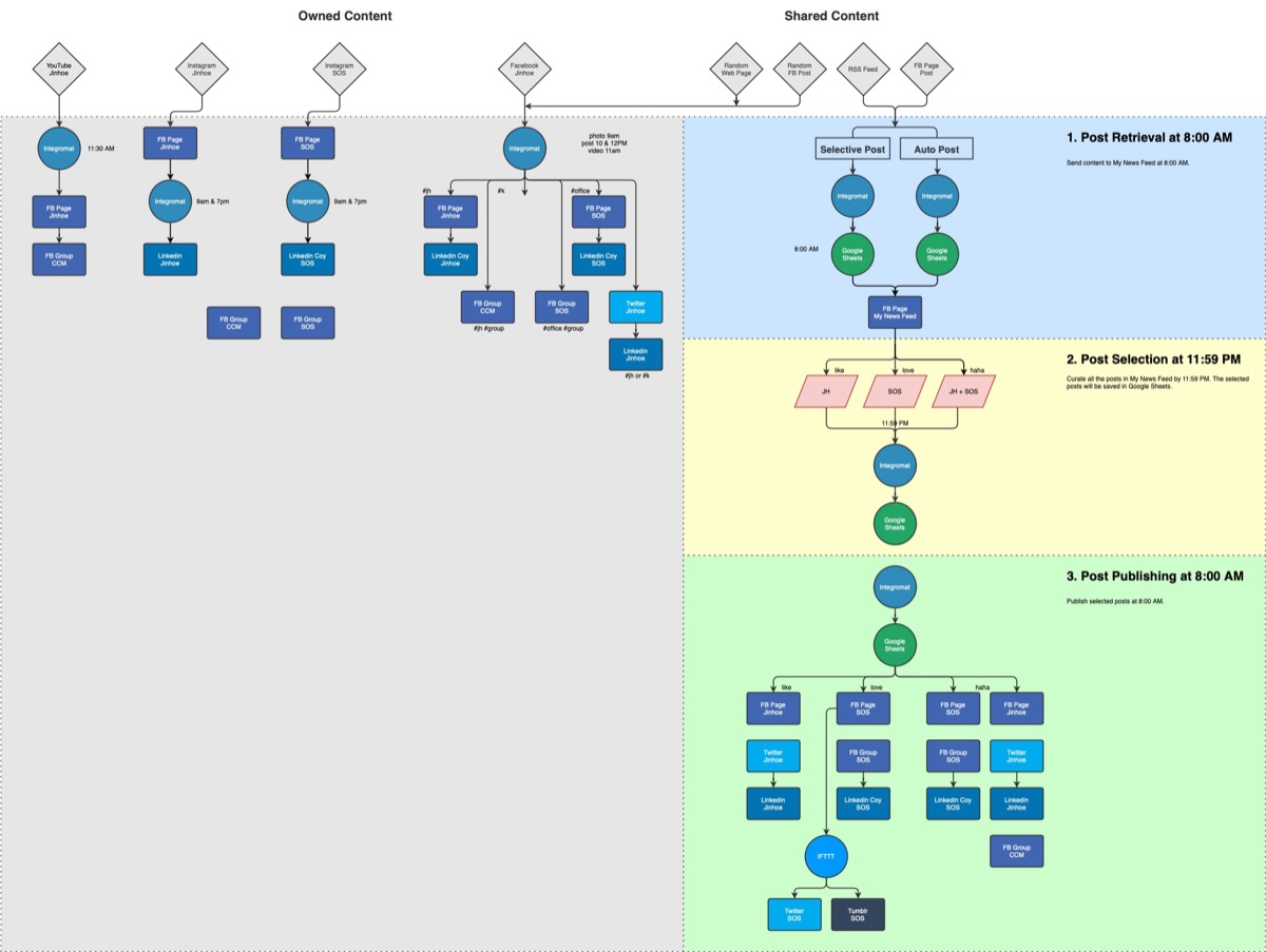 Thus, I sought to develop a system that would allow me to curate posts and publish it across various social media platforms. I selected Facebook as the content curation platform due to its user-friendly mobile app