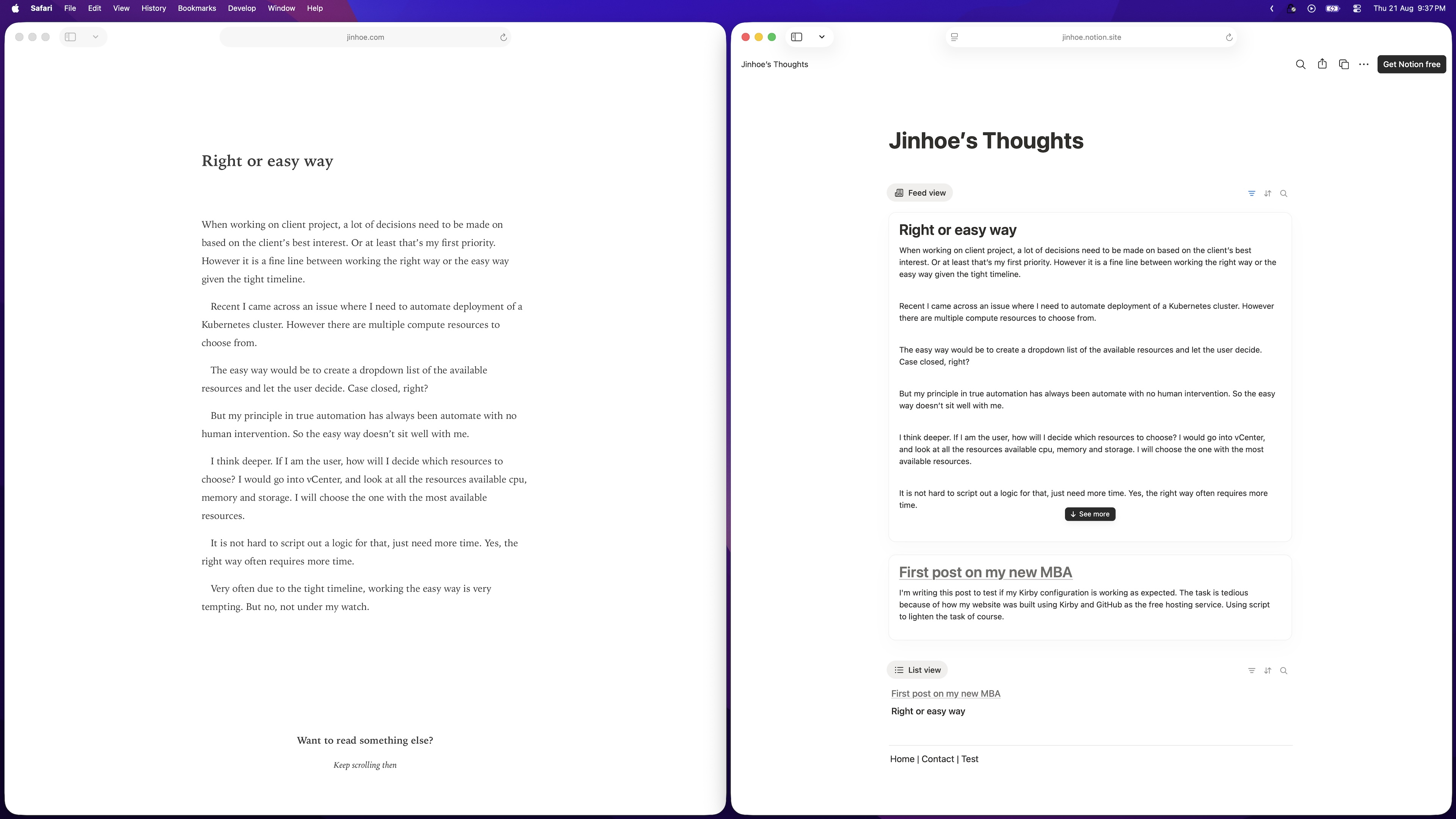 Notion’s Feed view shows promise, but it still feels unfinished. The font and spacing look ugly, so for now I will continue using Kirby.